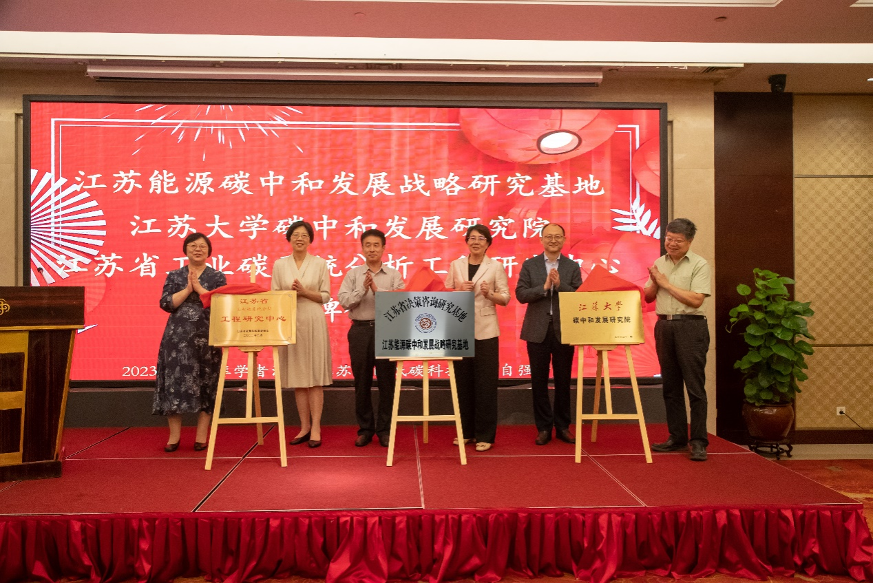 劉西忠、邢衛(wèi)紅為江蘇能源碳中和發(fā)展戰(zhàn)略研究基地揭牌;汪壽陽、張濟建為江蘇大學碳中和發(fā)展研究院揭牌;范英、李紅為江蘇省工業(yè)碳系統(tǒng)分析工程研究中心揭牌,并為學術委員會主任汪壽陽頒發(fā)聘書。開幕式由李紅主持。