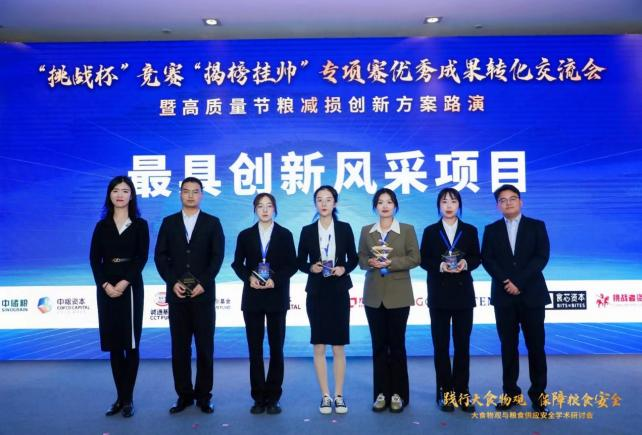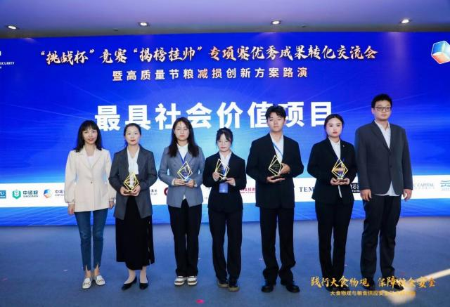 10月15日至16日,第十八屆“挑戰杯”競賽“揭榜掛帥”專項賽優秀成果轉化交流會暨高質量節糧減損創新方案路演在北京舉行。我校獲最具創新風采項目1項、最具社會價值項目1項,并與食芯資本初步達成合作協議。