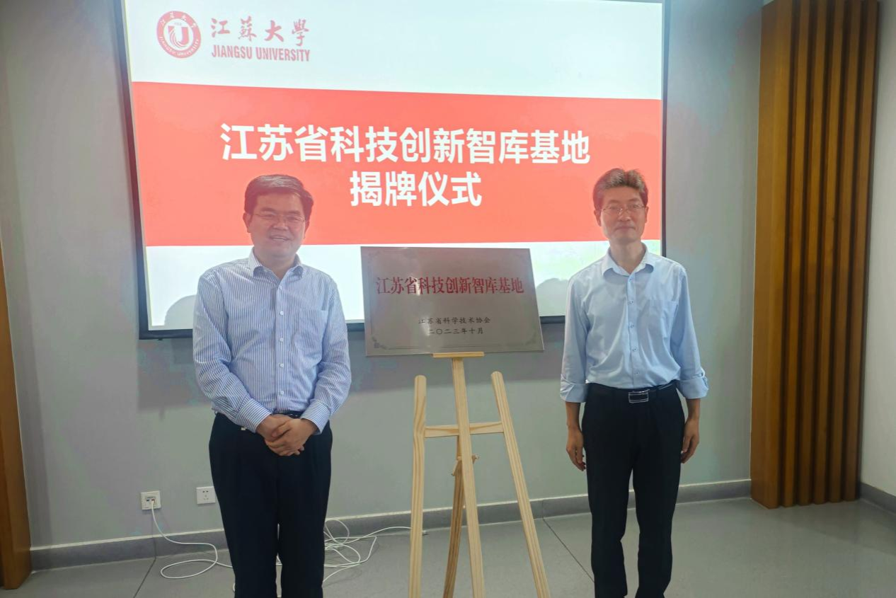 儀式上,李洪波和楊冬生為我校江蘇省科技創(chuàng)新智庫基地揭牌。