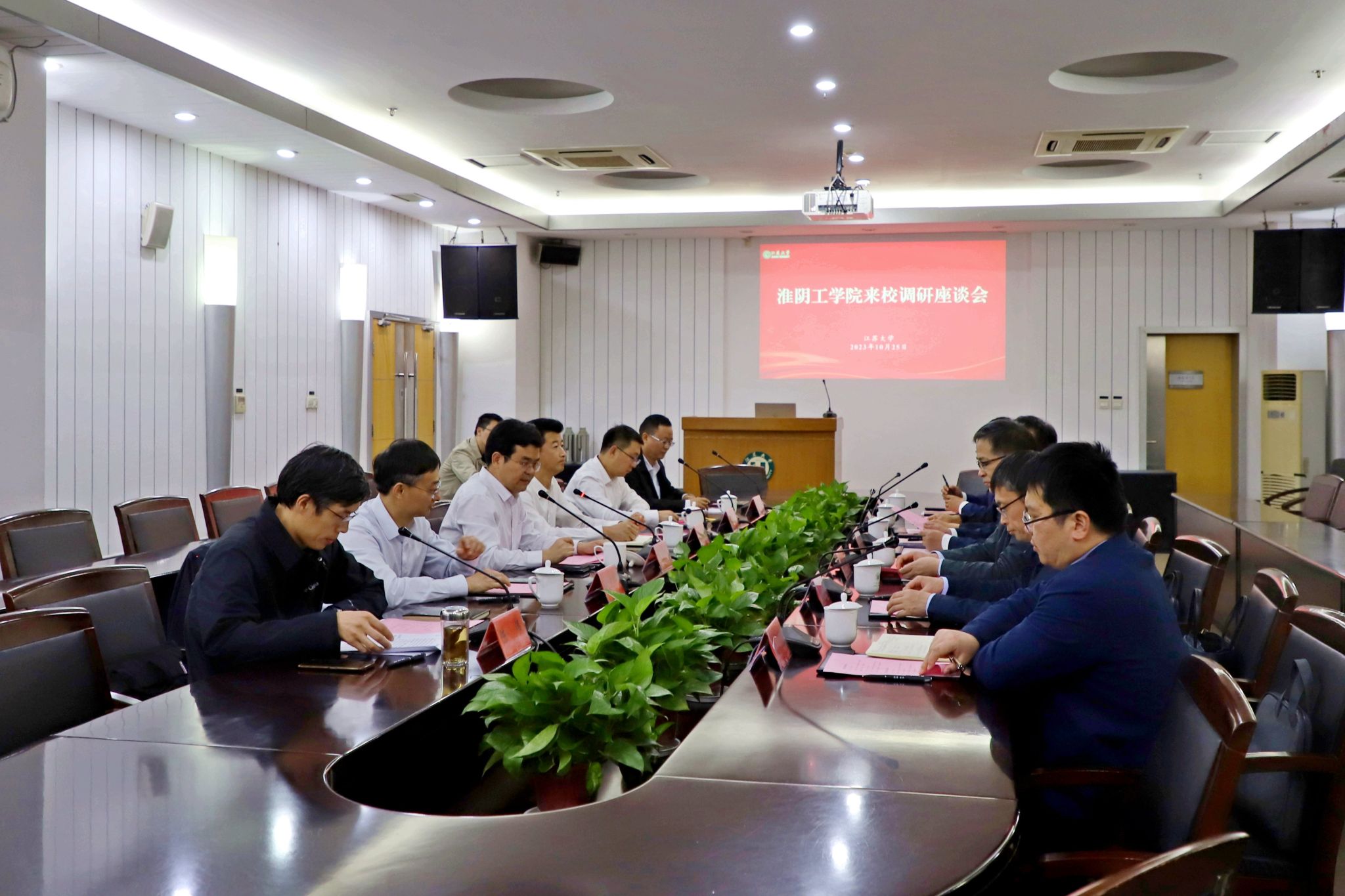 10月25日,淮陰工學院黨委書記常綠一行來校調研,校黨委書記李洪波在會議中心第二報告廳與來賓座談交流。
