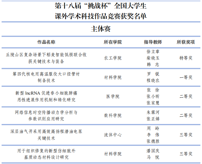 10月27日至31日,第十八屆“挑戰杯”全國大學生課外學術科技作品競賽各項賽事在貴州大學落幕。學校以優異成績再捧“優勝杯”,這是我校連續九次捧得“優勝杯”,也是學校第十座“優勝杯”。