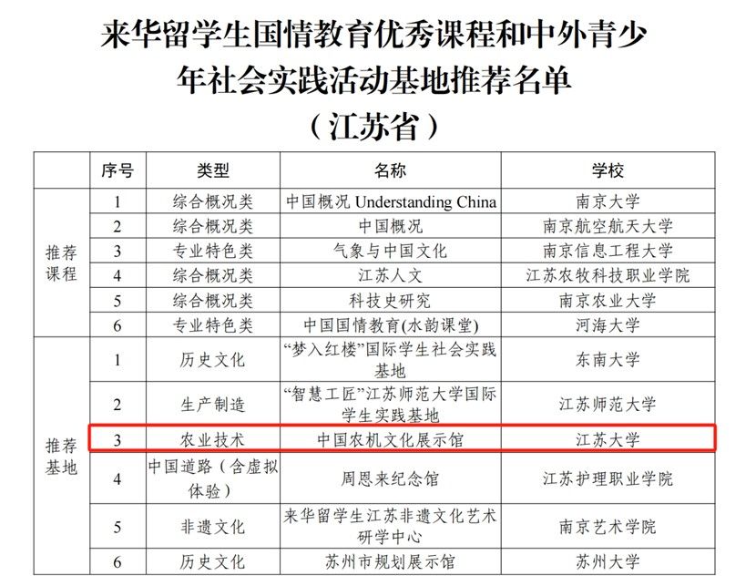 近日,教育部國際合作與交流司委托中國教育國際交流協會開展的首批“來華留學生中國國情教育優秀課程和中外青少年社會實踐活動基地”評選結果揭曉,我校中國農機文化展示館成功入選。