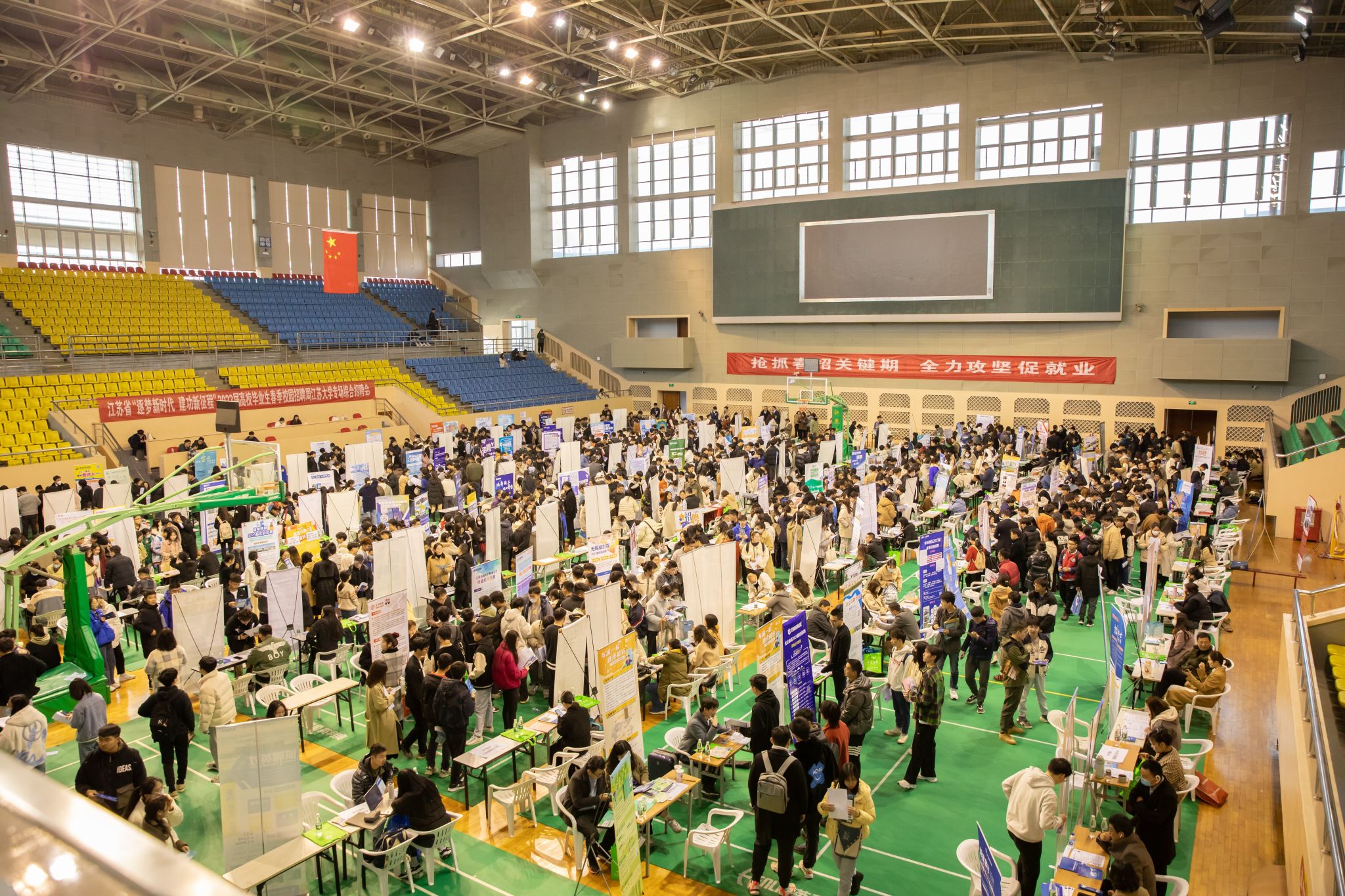 3月3日,江蘇省“逐夢新時代 建功新征程”2023屆高校畢業生春季校園招聘周江蘇大學專場綜合招聘會在校體育館二樓主館舉辦,這是我校首場春季綜合性供需洽談會。