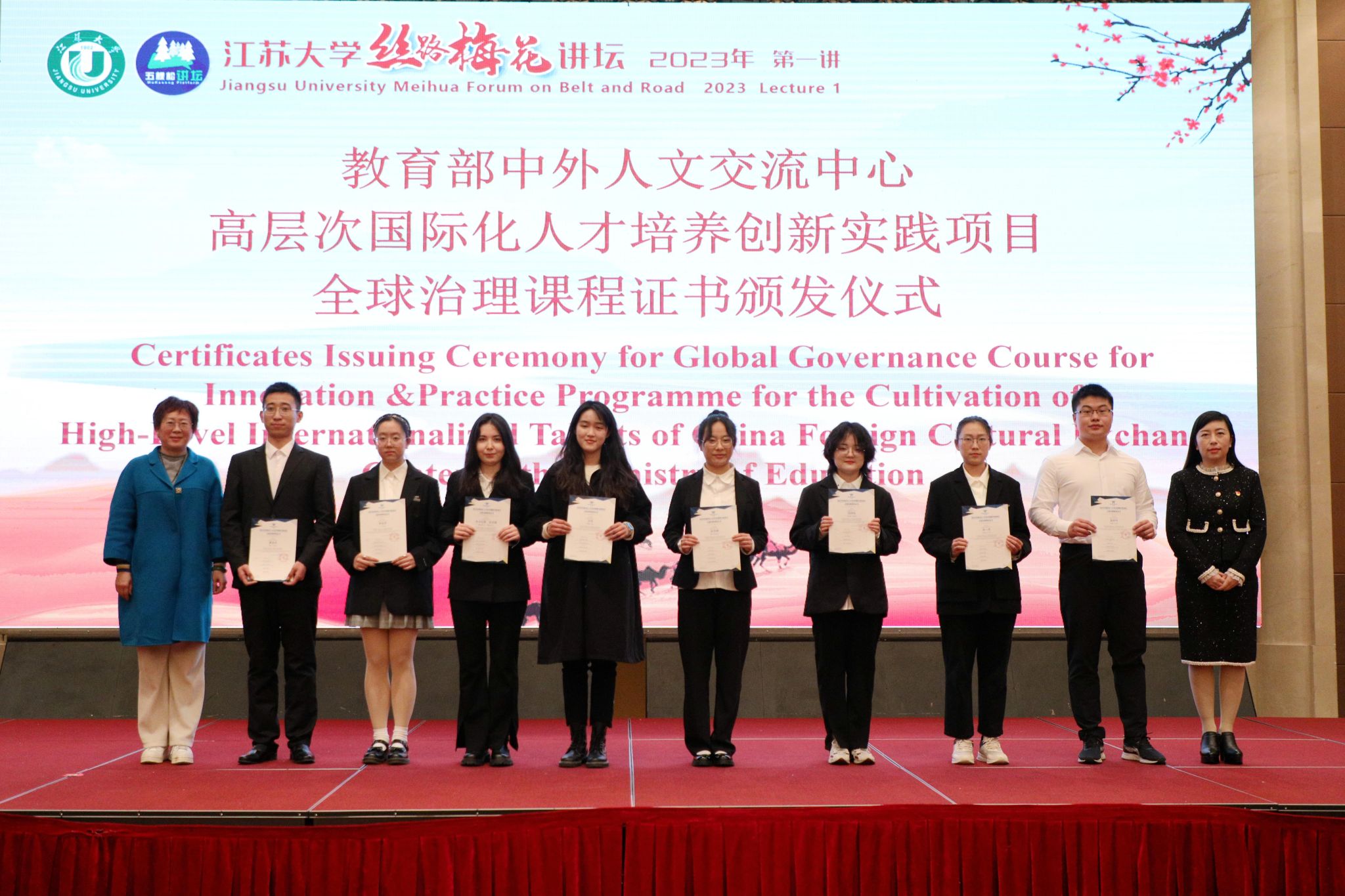 現場還舉行了鎮江航空教育小鎮授牌“感知中國基地”儀式、教育部中外人文交流中心高層次國際化人才培養創新實踐項目全球治理課程證書頒發儀式、科技部援外培訓項目第三屆國際腹針疼痛治療師培訓證書頒發儀式。