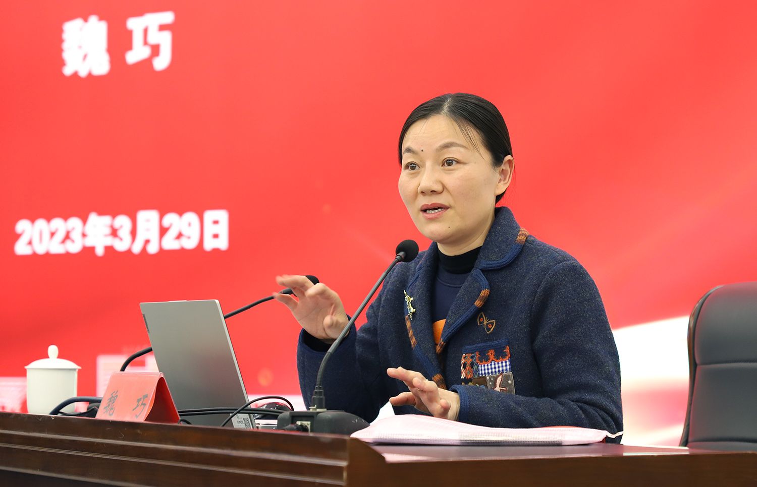3月29日,江蘇大學全國兩會精神專題報告會在青教公寓多功能廳舉行。全國人大代表、鎮江市鎮江新區永興農機機械化專業合作社理事長、江蘇潤果農業發展有限公司董事長、江蘇大學產業教授魏巧走進校園,為師生作全國兩會精神專題報告。報告會由校黨委常委、宣傳部部長楊道建主持。